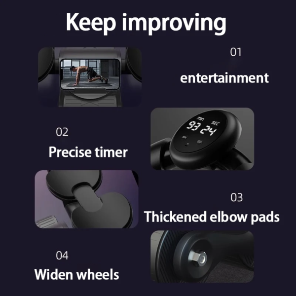 Our ab workout roller features wider front and rear wheels to provide a stable and smooth rolling motion.
